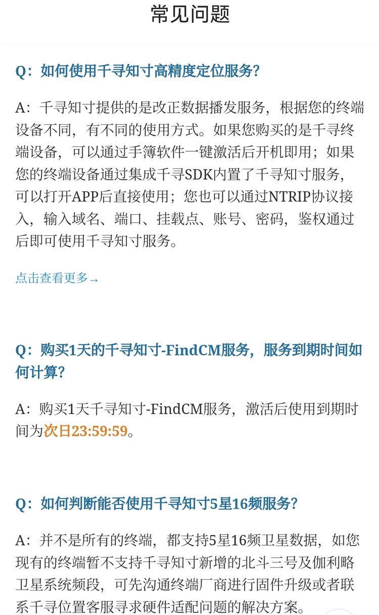 A:并不是所有的终端,都支持5星16频卫星数据,如您现有的终端暂不支持千寻知寸新增的北斗三号及伽利略卫星系统频段,可先沟通终端厂商进行固件升级或者联系千寻位置客服寻求硬件适配问题的解决方案。