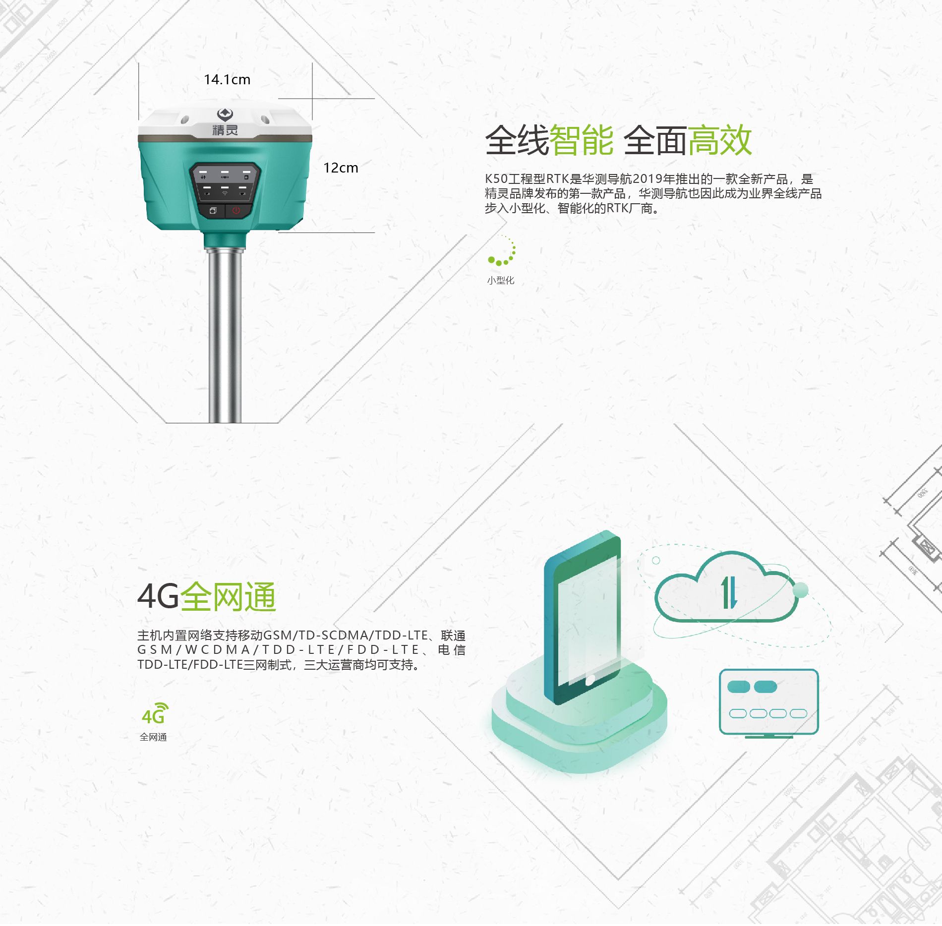 品牌:华测精灵 型号:K50 材质:工业三防 产地:国产 内存:8G GPS定位精度:1-2cm 外形方式:141*120 mm 防水功能:IP68 无线类型:内置 外接电源形式:USB 项目 内容 参数 接收机特性
